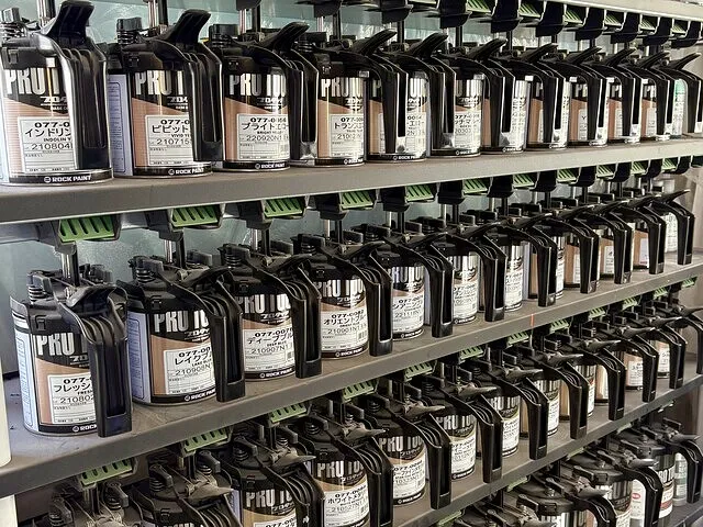 工場内には100色以上の塗料を常備したミキシングマシーンを設置しております。熟練の職人がお車に最も近い色を調色し、部分塗装もムラなくきれいに仕上げます。